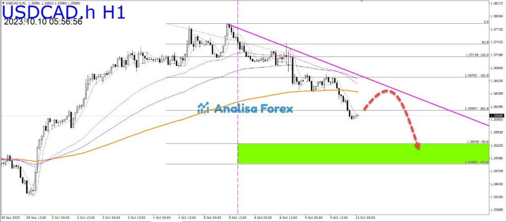 Analisa Forex Hari Ini – Secara umum USDCAD timeframe H1 dalam tekanan bearish. Dapat dilihat pada chart, saat ini harga dibawah EMA200.