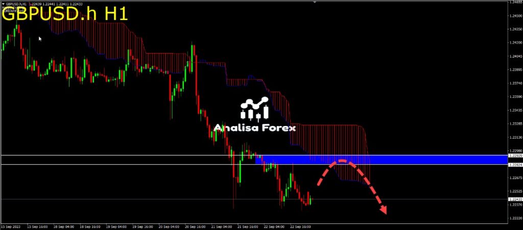 Analisa Forex Hari Ini – Saat ini GBPUSD timeframe H1 sedang dalam bias bearish. Dapat dilihat pada chart, saat ini harga berada di bawah EMA50, 100, dan 200.